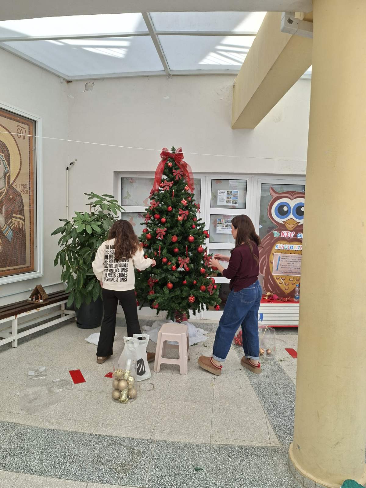 Ένα ξεχωριστό όμορφο πρωινό περίμενε μαθητές, γονείς κι εκπαιδευτικούς τη Δευτέρα 17/11/2025 στο σχολείο μας. Ο Σύνδεσμος Γονέων του σχολείου μας, κάλεσε γονείς και παιδιά να παρευρεθούν την Κυριακή το πρωί 16/11/2025 στο προαύλιο του σχολείου για να βάψουν τα επιδαπέδια παιχνίδια, αλλά και για στολίσουν χριστουγεννιάτικα δέντρα, να ετοιμάσουν φάτνες, δωράκια και να κρεμάσουν κορδέλες, δημιουργώντας έτσι ένα φαντασμαγορικό χριστουγεννιάτικο περιβάλλον.