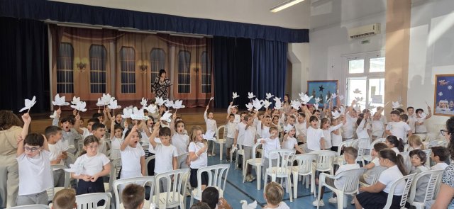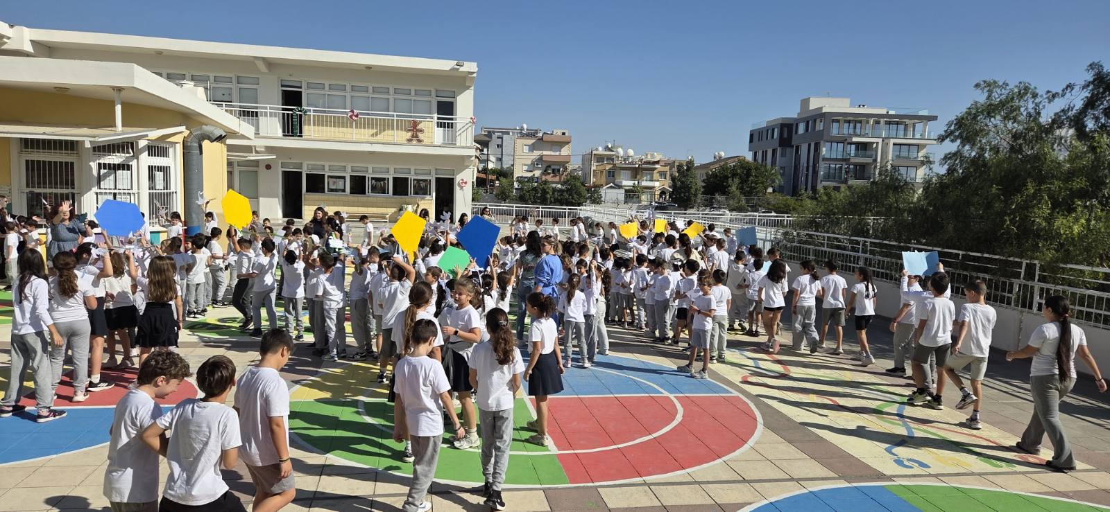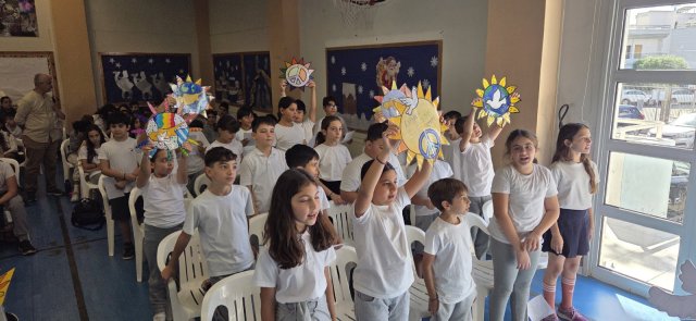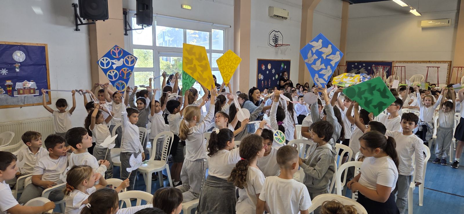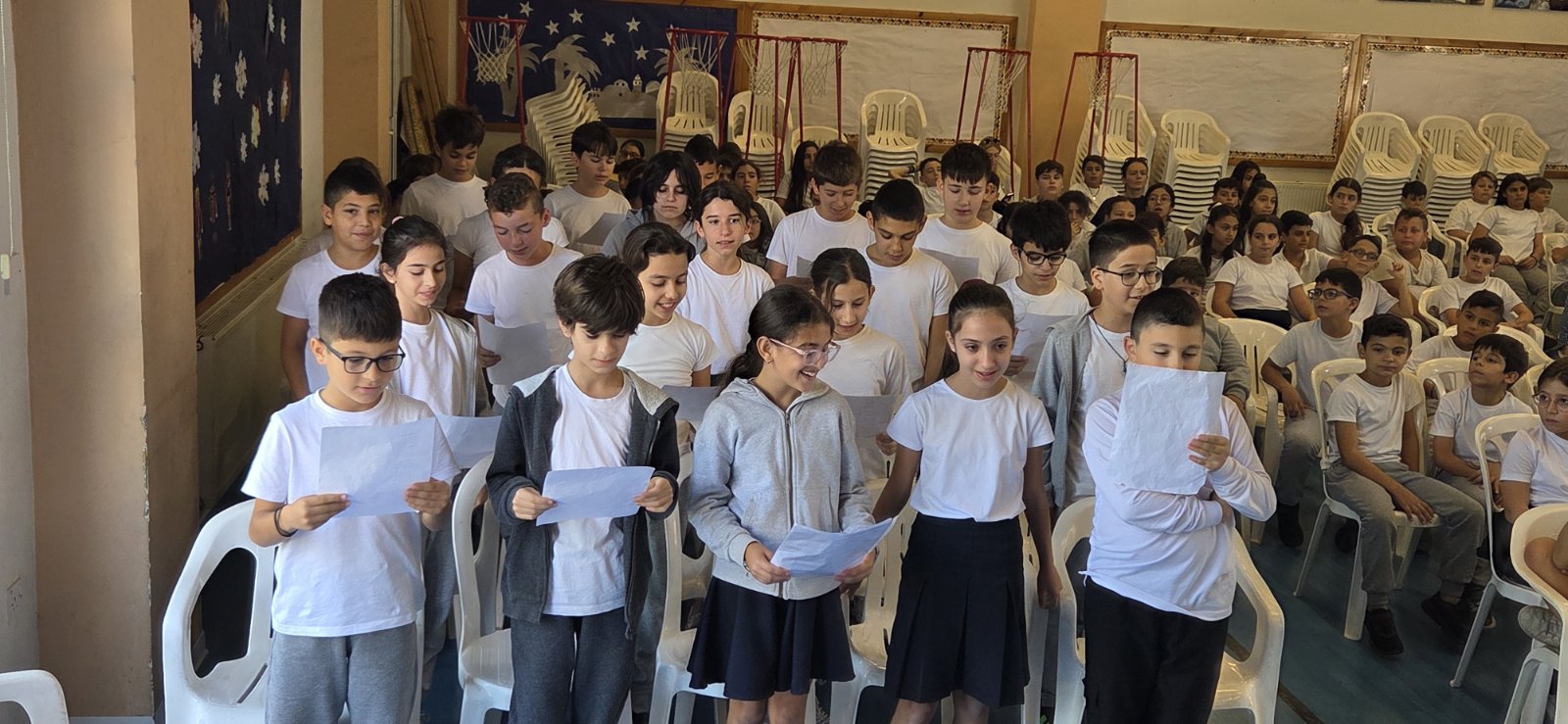 Δευτέρα, 17 Νοεμβρίου 2025, τα παιδιά του σχολείου μας συγκεντρώθηκαν στην αίθουσα εκδηλώσεων για να εκφράσουν τη διαμαρτυρία τους για την ανακήρυξη του κατεχόμενου τμήματος του νησιού μας ως κράτος. Με πολύ συναίσθημα παρουσίασαν κατασκευές με σύμβολα ειρήνης και ενότητας, απήγγειλαν ποιήματα και σήκωσαν πλακάτ με δυνατά μηνύματα. Τραγούδησαν πατριωτικά και ειρηνικά τραγούδια και στο τέλος πραγματοποίησαν πορεία στο προαύλιο του σχολείου, δείχνοντας πως παραμένουν ενωμένα ενάντια στην αδικία και ονειρεύονται μια ελεύθερη και επανενωμένη πατρίδα.