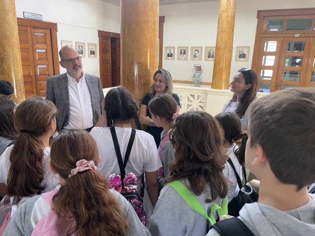 Στη συνέχεια, οι μαθητές επισκέφθηκαν το Δημαρχείο, όπου τους υποδέχθηκε ο δήμαρχος. Μια υπεύθυνη του δήμου τους ξενάγησε στους χώρους του δημαρχείου, προσφέροντας χρήσιμες πληροφορίες για τη λειτουργία και την οργάνωση της τοπικής αυτοδιοίκησης.Ακολούθως, πέρασαν από το κτήριο της Πρυτανείας που στεγάζεται στον χώρο του παλιού ταχυδρομείου.