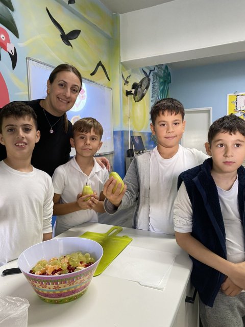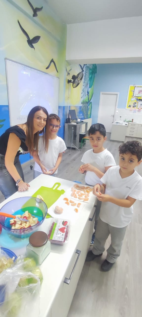 Στο πλαίσιο του μαθήματος της ''Γλώσσας μου'' με στόχο τα παιδιά να φτιάξουν λίστα με τα υλικά που θα χρειαστούν για μία φρουτοσαλάτα, καθώς επίσης στο πλαίσιο της Περιβαλλοντικής Πολιτικής του σχολείου για αξιοποίηση ώριμων φρούτων, τα παιδιά της Β'1 και Β’2 αποφάσισαν να φτιάξουν και να απολαύσουν τη δική τους φρουτοσαλάτα με τη βοήθεια των δασκάλων τους!