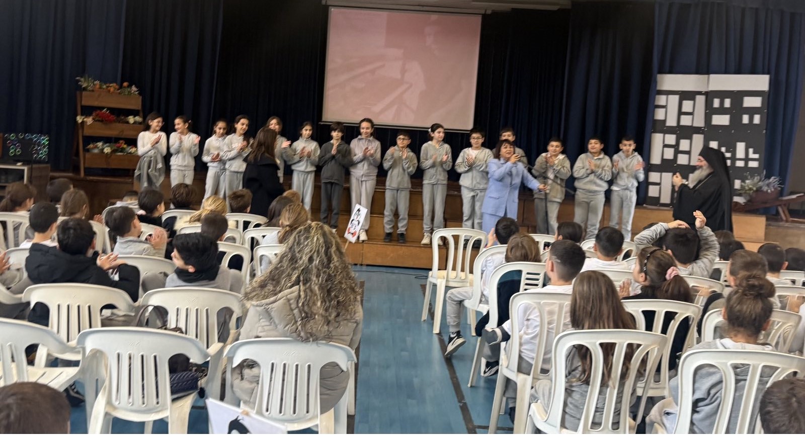 Στις 26/01/2026 είχαμε την τιμή να επισκεφθεί το σχολείο μας ο χωρεπίσκοπος Αμαθούντος κκ. Νικόλαος. Η εκδήλωση καλωσορίσματός του έλαβε χώρα στην Αίθουσα Πολλαπλής Χρήσης του σχολείου μας, όπου η χορωδία του σχολείου μας υποδέχτηκε τον Θεοφιλέστατο με τα χαρούμενά της τραγούδια, υπό την καθοδήγηση της κ Θεανώς.