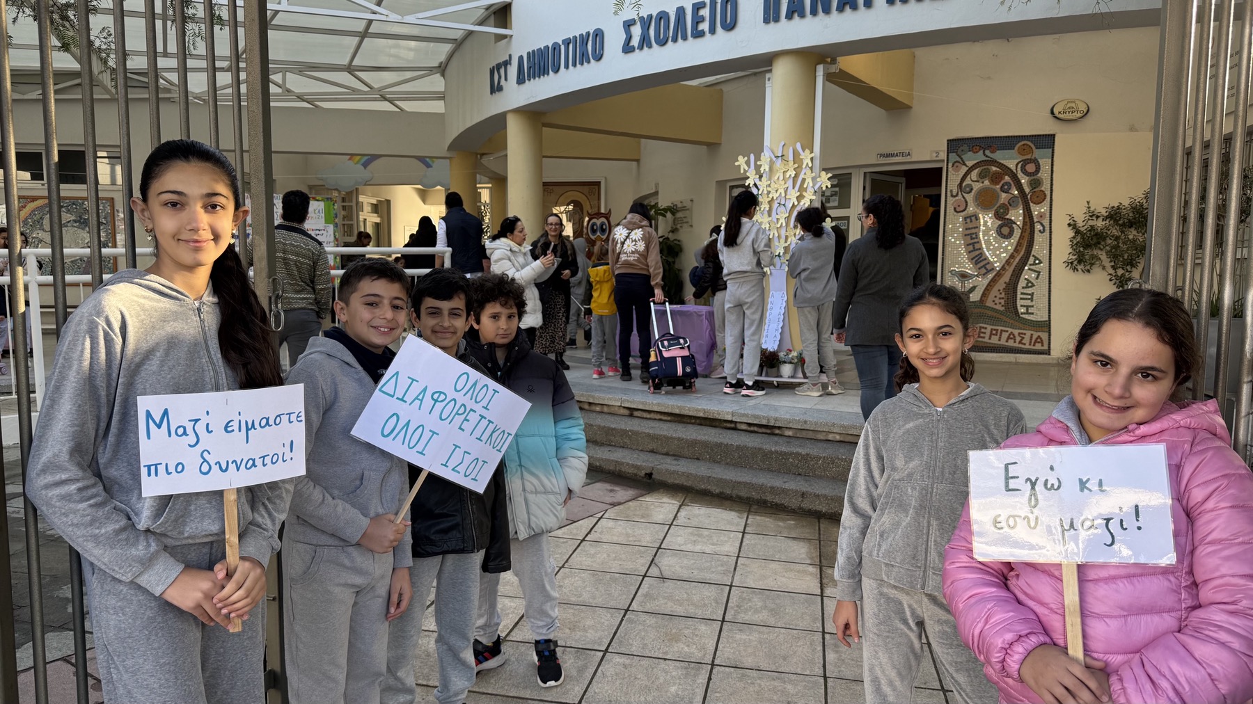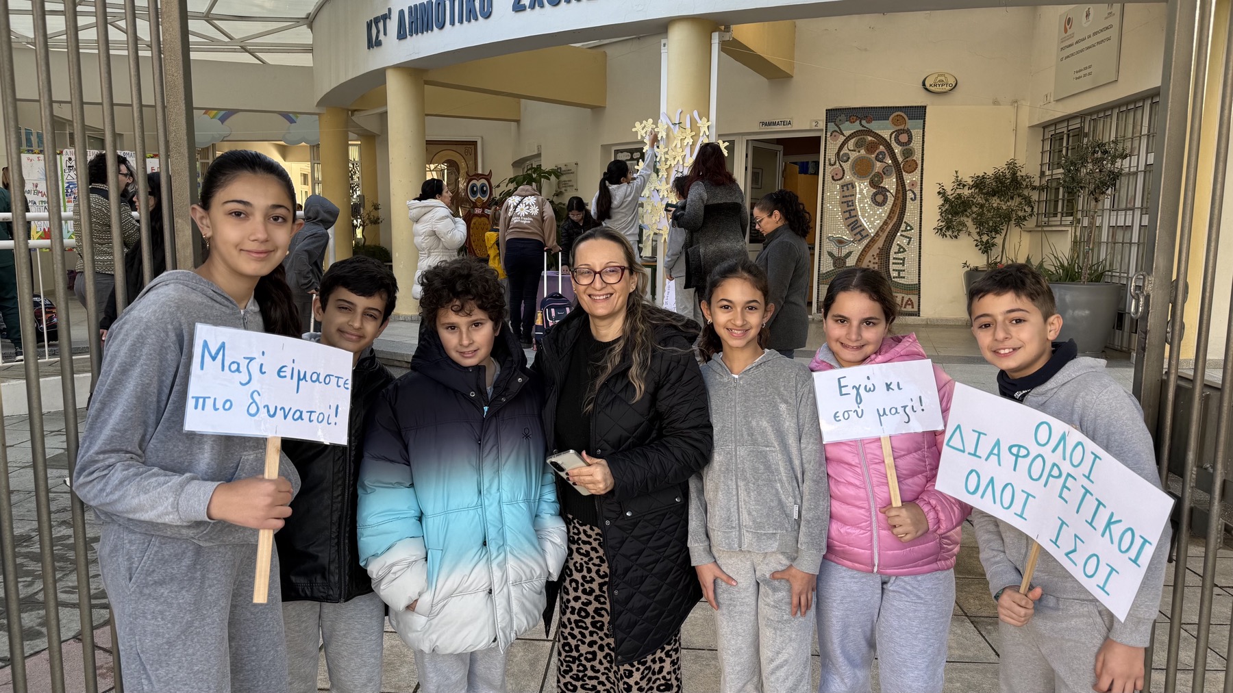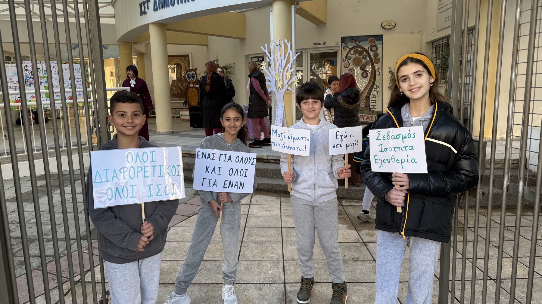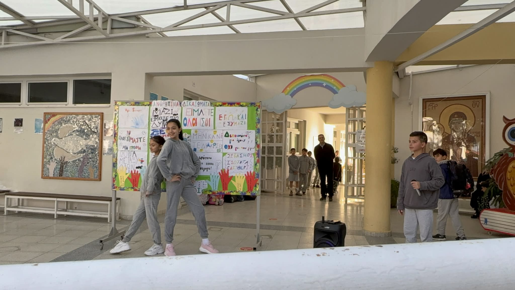Στο πλαίσιο του μαθήματος «Αγωγή Υγείας» τα παιδιά της Ε'2 ασχολήθηκαν με την αξία των ανθρωπίνων δικαιωμάτων κι έφτιαξαν τις δικές τους αφίσες με συνθήματα για την ισότητα μεταξύ όλων των ανθρώπων. Το πρωί της Πέμπτης, στις 19 Φεβρουαρίου, υποδέχτηκαν τους γονείς στο σχολείο και τους κάλεσαν να γράψουν μια ευχή ή ένα σύνθημα για τα ανθρώπινα δικαιώματα ώστε να φτιάξουν όλοι μαζί το δέντρο των ανθρωπίνων δικαιωμάτων. Η μέρα έκλεισε με το τραγούδι «Έχω μάθει» από τα παιδιά της Α' τάξης.