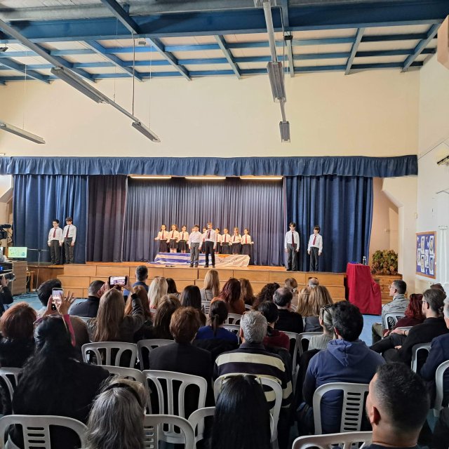Μέσα από μια λιτή αλλά ουσιαστική εκδήλωση, οι μαθητές και οι μαθήτριες των Ε’1 και Γ’ 1 τάξεων του σχολείου μας ζωντάνεψαν στιγμές από τον εθνικοαπελευθερωτικό αγώνα της ΕΟΚΑ, αποδίδοντας φόρο τιμής στους ήρωες που αγωνίστηκαν με θάρρος, αυταπάρνηση και πίστη για την ελευθερία της πατρίδας μας.
