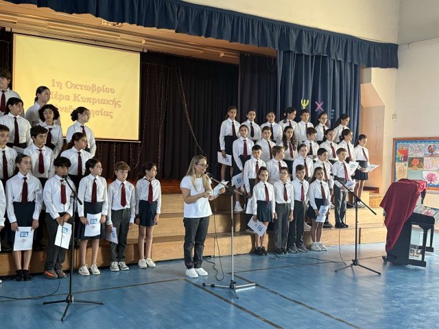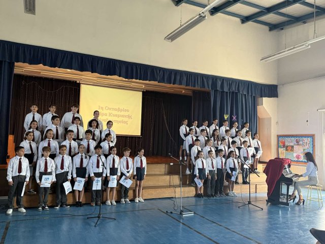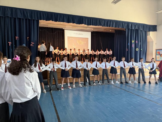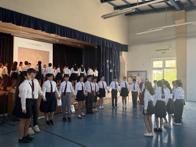 30 Σεπτεμβρίου 2025, όπως κάθε χρόνο έτσι και φέτος γιορτάζουμε την επέτειο της Ανεξαρτησίας της Κύπρου. Τα παιδιά της Στ' τάξης παρουσίασαν μέσα από τραγούδι, χορό, ομιλίες και απαγγελίες το χρονικό αλλά και τη σημασία της 1ης Οκτωβρίου για την πατρίδα μας.
