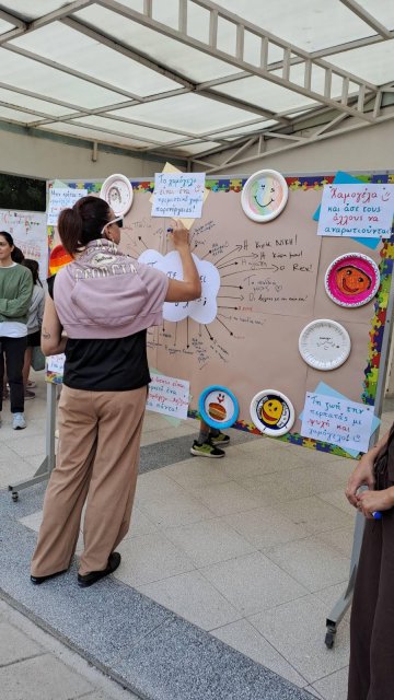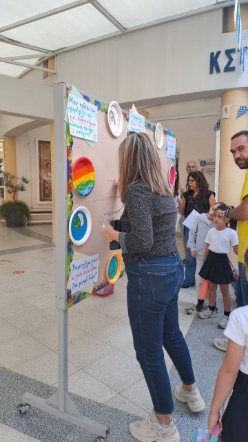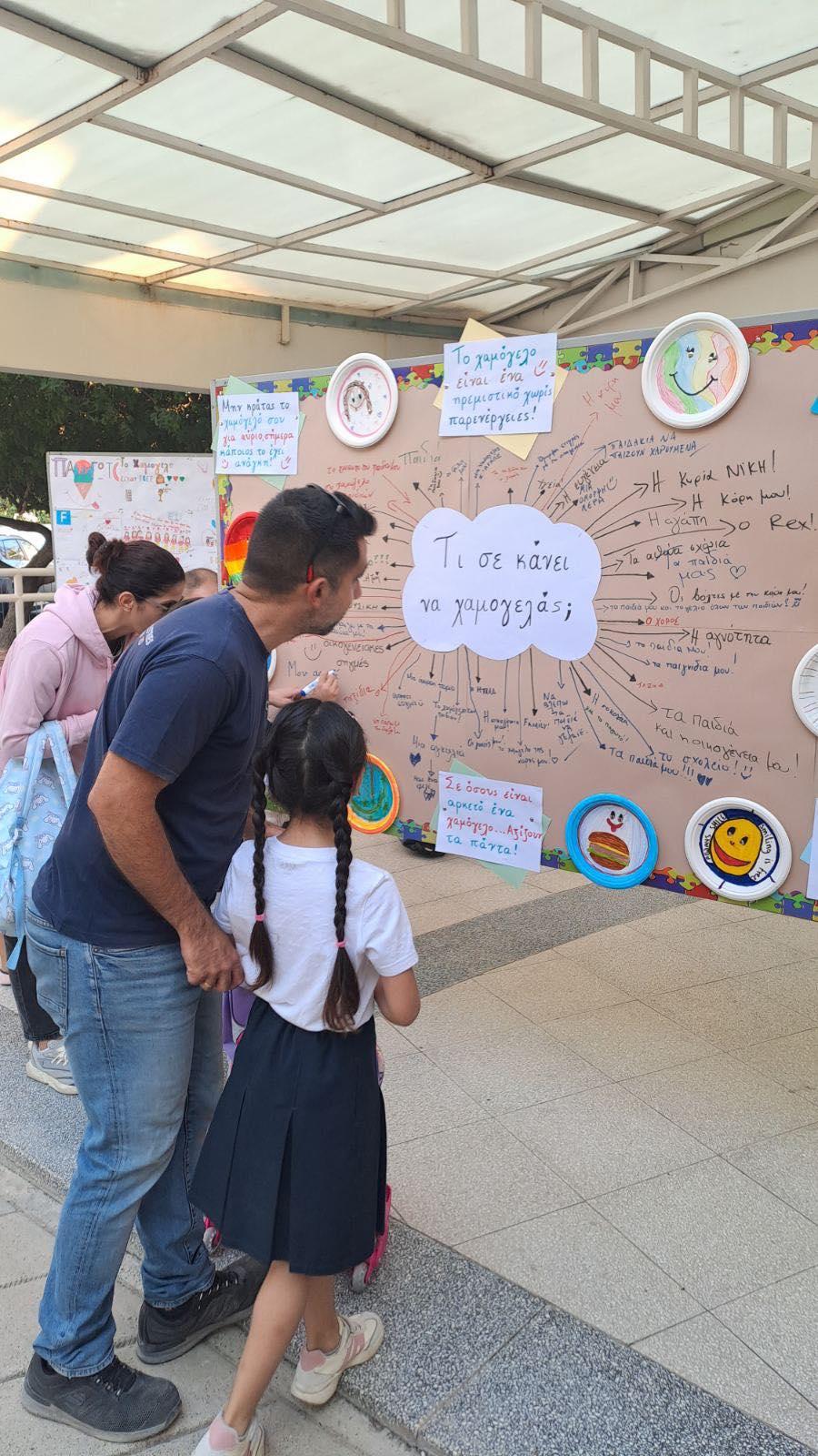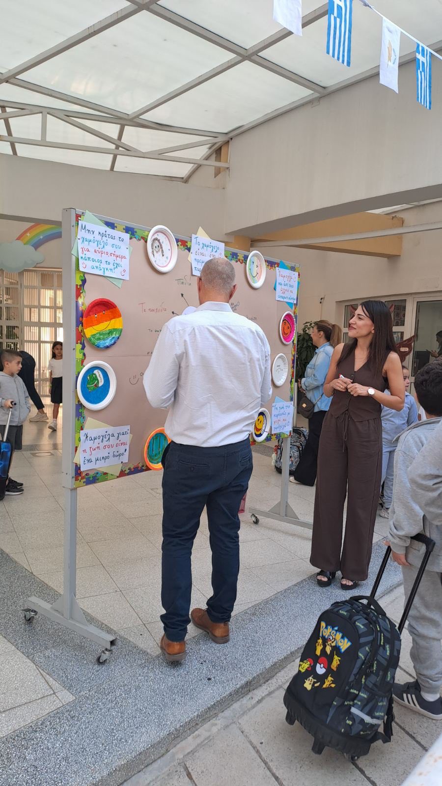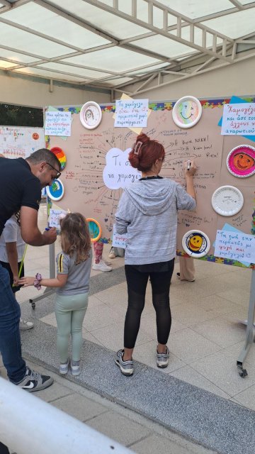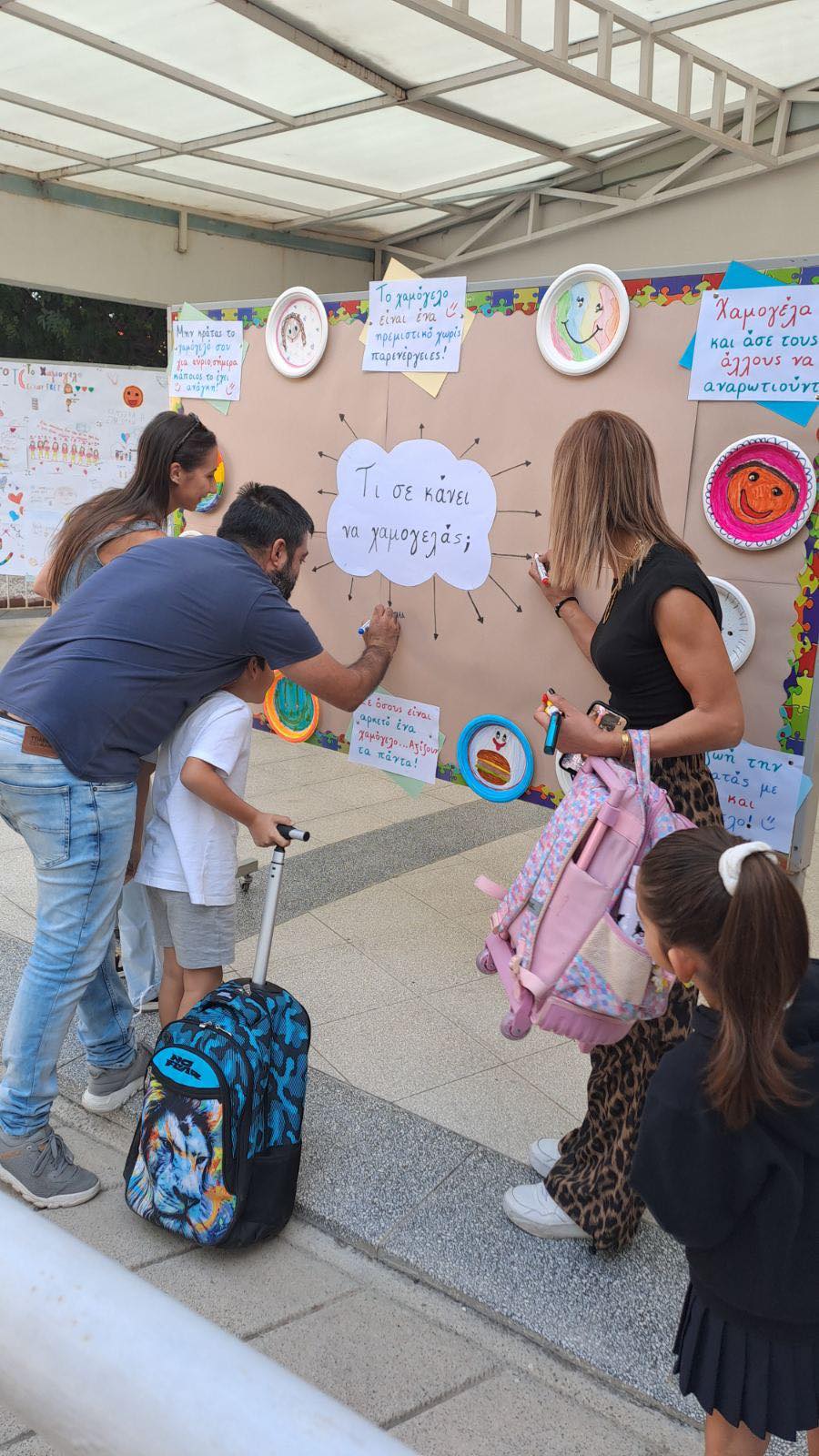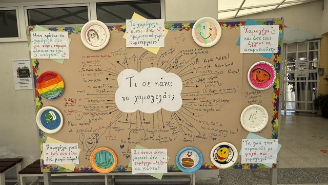 Στο πλαίσιο του μαθήματος «Αγωγή Υγείας», τα παιδιά των τμημάτων της Στ΄ τάξης ασχολήθηκαν με την αξία του χαμόγελου στη ζωή μας και το τι μπορεί να προσφέρει αυτό στην ψυχική μας υγεία. Έτσι έφτιαξαν ζωγραφιές για όλα αυτά που τους κάνουν χαρούμενους, έπαιξαν το παιχνίδι «Μυστικός Αγγελιαφόρος Χαμόγελου» και συμπλήρωσαν το ημερολόγιο του χαμόγελου. Το πρωί της Τρίτης, στις 4 Νοεμβρίου, υποδέχτηκαν τους γονείς τους, στην είσοδο του σχολείου, με χαμόγελο και τους κάλεσαν να γράψουν τι τους κάνει κι εκείνους να χαμογελούν. Η μέρα έκλεισε με το τραγούδι «Χαμογέλασε στον ήλιο» από τα παιδιά των τμημάτων της Α΄ τάξης. Συγχαρητήρια σε παιδιά και εκπαιδευτικούς που μας έφτιαξαν τη μέρα και μας βοήθησαν να καταλάβουμε την αξία του χαμόγελου στη ζωή μας!